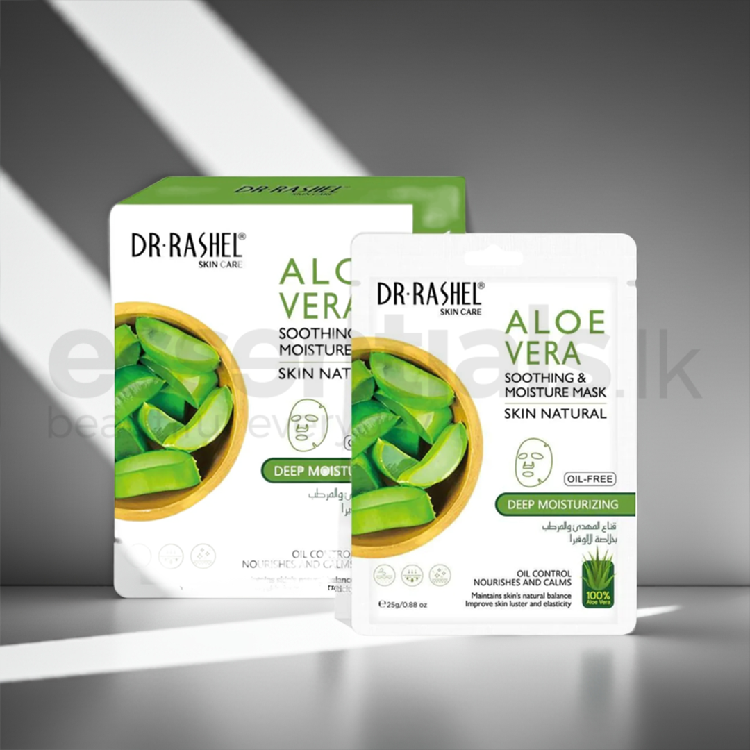 Dr. Rashel Aloe Vera Sheet Face Mask contains natural aloe vera extract to provide deep hydration, calming relief, and revitalization for the skin. Crafted from a gentle, breathable fabric, the mask fits comfortably and ensures optimal serum absorption for maximum skincare benefits.
