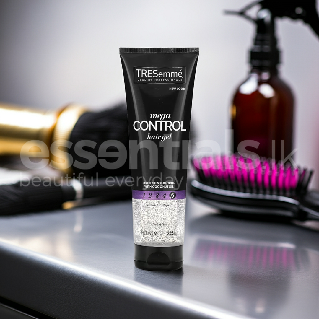 Expertly control your hair in all types of weather with TRESemmé Mega Control Hair Gel 24h Frizz Control. Formulated with coconut oil & free of alcohol, this professional-grade gel offers the strongest hold for every hair type & style, from braids to short layers. Trusted & used by salon experts, this gel keeps hair touchably soft while creating elegant ponytails or effortless beachy waves. For optimal results, combine it with other premium TRESemmé styling products