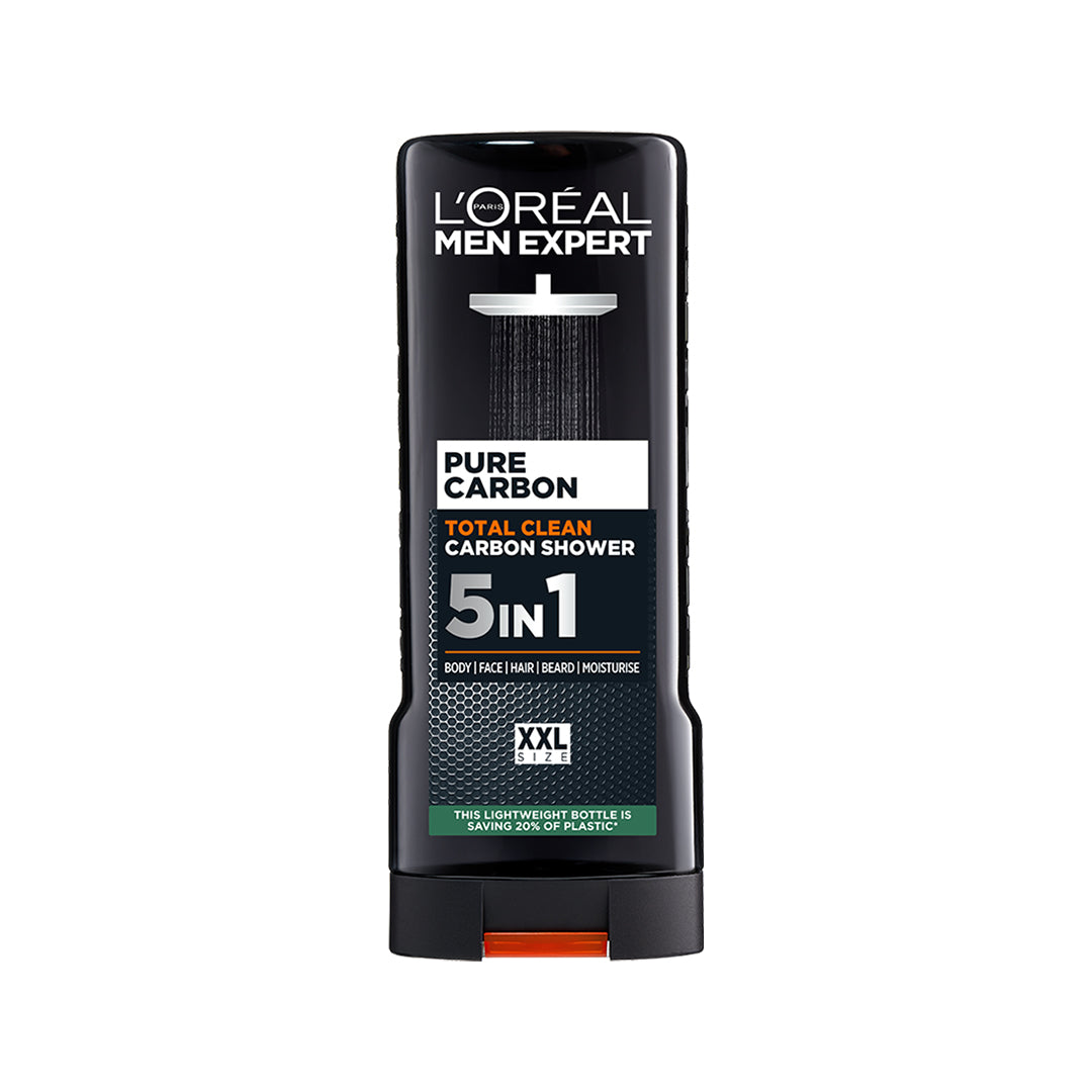 Experience the ultimate shower gel with L'Oreal Men Expert Pure Carbon Total Clean. This 400ml product contains a carbon-infused formula that effectively nourishes & cleanses, providing a 5-in-1 solution for complete grooming needs. From face & body to hair, shaving, & moisturizing, this shower gel is a must-have for any man seeking a deep & refreshing clean.
