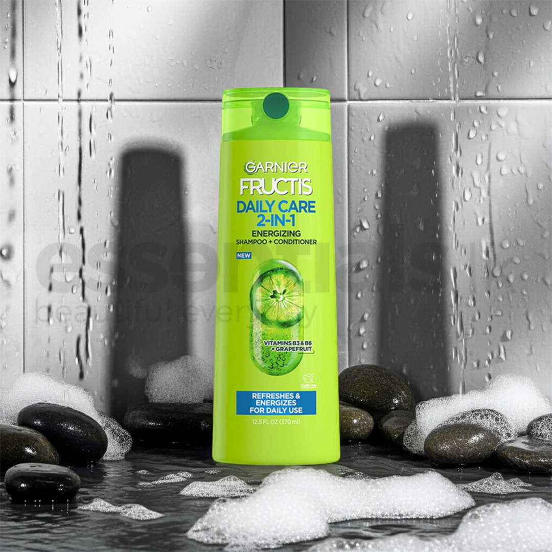 Fructis Daily Care 2-in-1 Shampoo & Conditioner revitalizes your hair & scalp with a blend of grapefruit & vitamins B3 & B6. This formula helps remove buildup while promoting hair that looks healthy & feels soft to the touch. Vitamins B3 & B6 contribute to shining, well-nourished hair, making it an effective daily care solution.