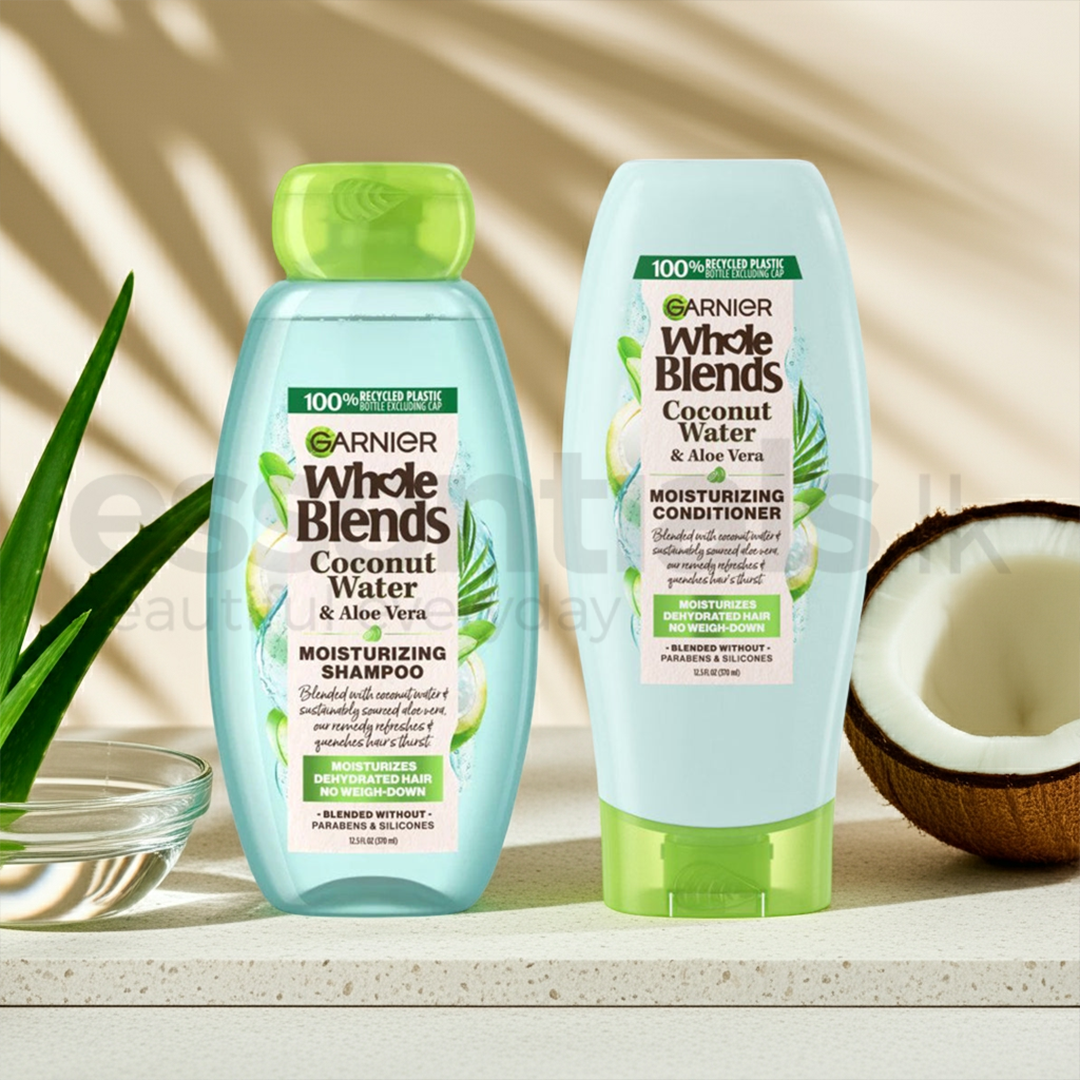 Garnier Whole Blends Coconut Water & Aloe Vera Conditioner intensely hydrates dry hair without causing heaviness. Designed to complement the matching shampoo, it nourishes and refreshes hair after cleansing. This vegan formula excludes silicones, parabens, phthalates, mineral oils, and DMDM hydantoin, ensuring a gentle yet effective care routine. Certified cruelty-free by Cruelty Free International’s Leaping Bunny Program.