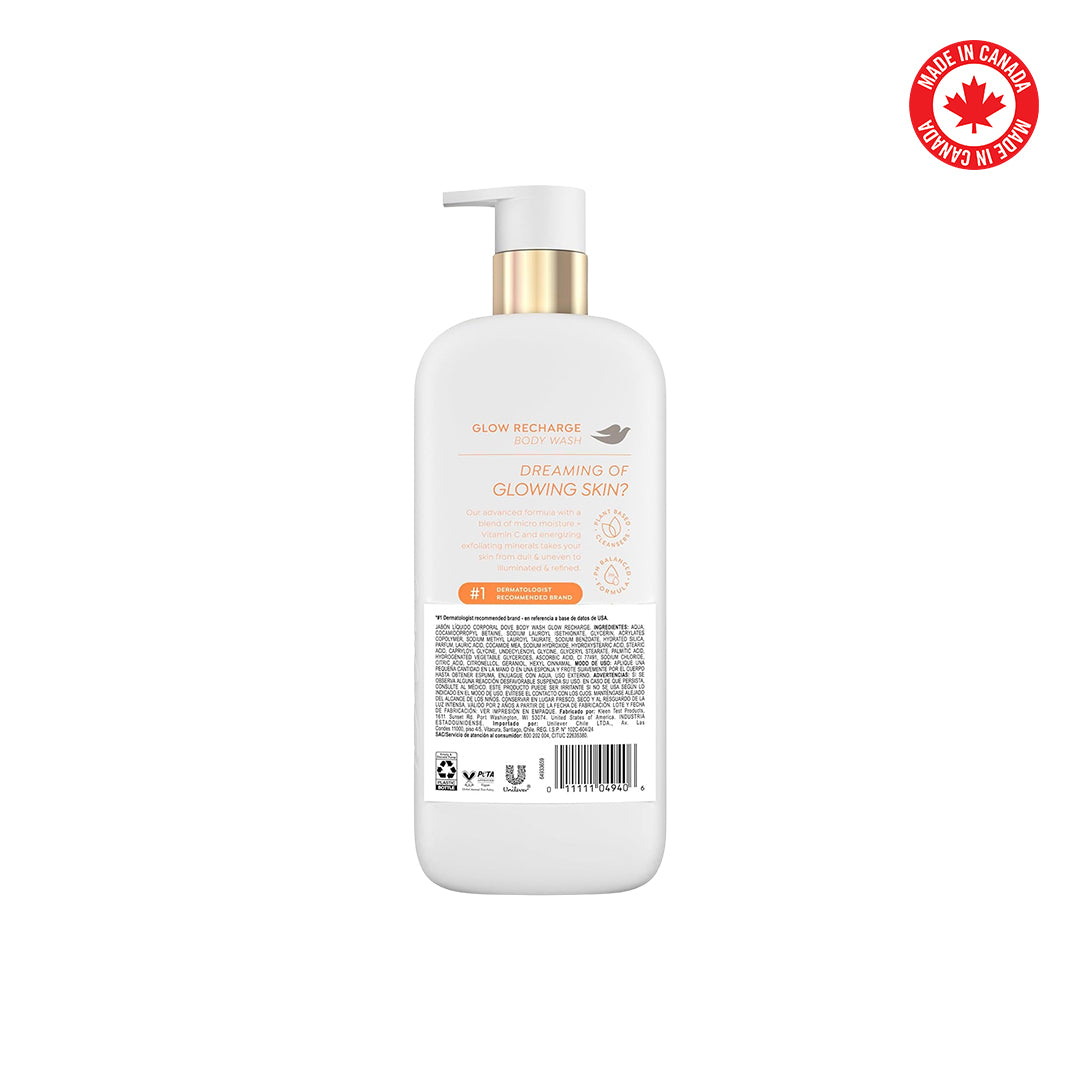 Experience radiant skin with Dove Glow Recharge Body Wash, a clinically-developed formula featuring 3% brightening serum combined with exfoliating minerals & Vitamin C to restore luminosity & even skin tone. The innovative gel transforms into a sumptuous lather enriched with tropical & berry aromatics for an elevated shower experience. Powered by plant-derived gentle cleansers & formulated without sulfates or parabens, it cleanses effectively while maintaining skin's natural barrier. Certified vegan by PETA, this thoughtfully-crafted body wash represents the intersection of advanced skincare efficacy & ethical beauty standards.
