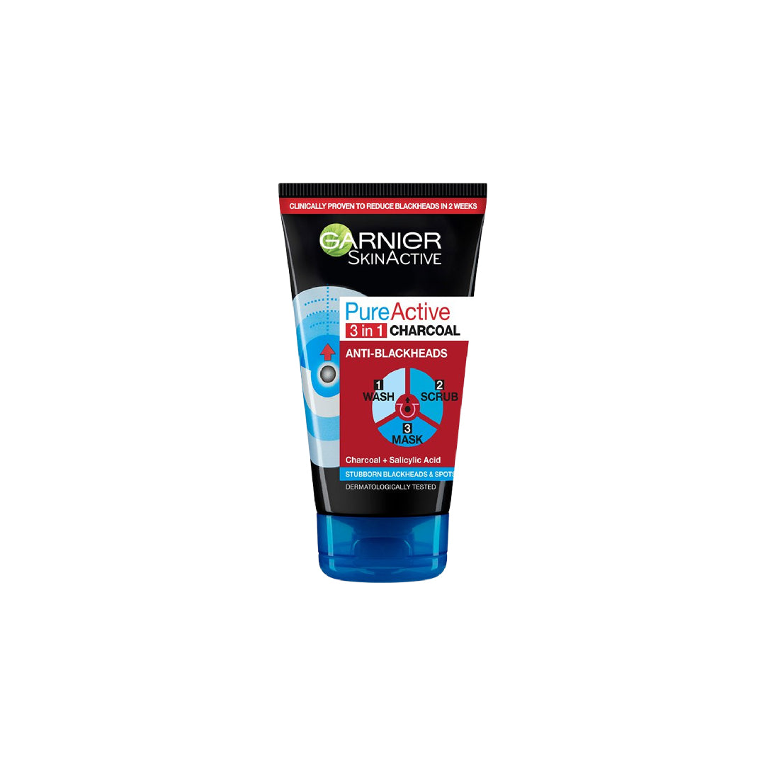 Garnier Pure Active BHA Charcoal Anti - Blackhead 3 In 1 Wash For Acne Prone Skin 150ml