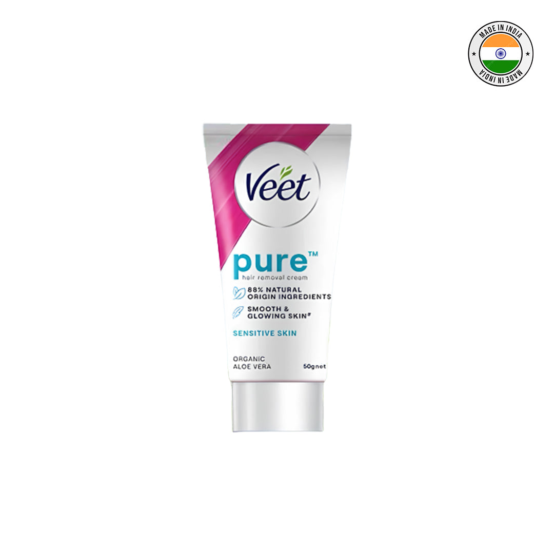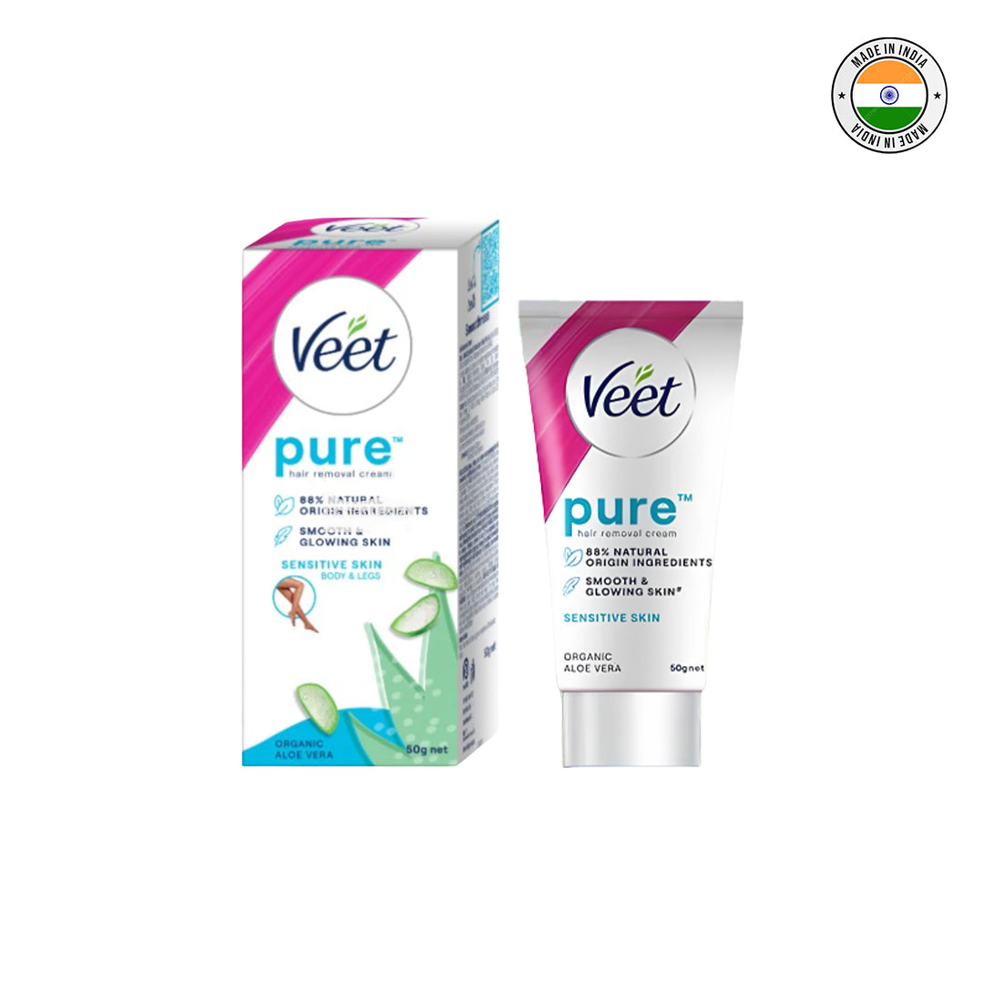 Experience effortless hair removal with Veet Pure Hair Removal Cream for Sensitive Skin your at-home solution for silky-smooth results. This fast-acting formula tackles stubborn hair in just 3–6 minutes across legs, arms, underarms, bikini line, & face. Enriched with aloe vera & vitamin E, it removes hair while simultaneously caring for your skin, maintaining hydration for a full 24 hours. The smart fragrance technology ensures a pleasant, odour-free finish every time. Regular use reveals finer, softer regrowth, so your skin stays smoother for longer between applications. Dermatologically proven safe for sensitive skin, this cream merges powerful hair removal with skincare excellence delivering deep moisture, anti-ageing support, & gentle soothing in one simple step