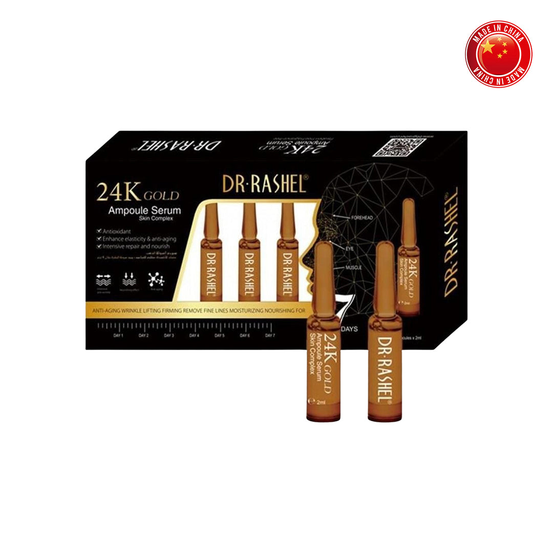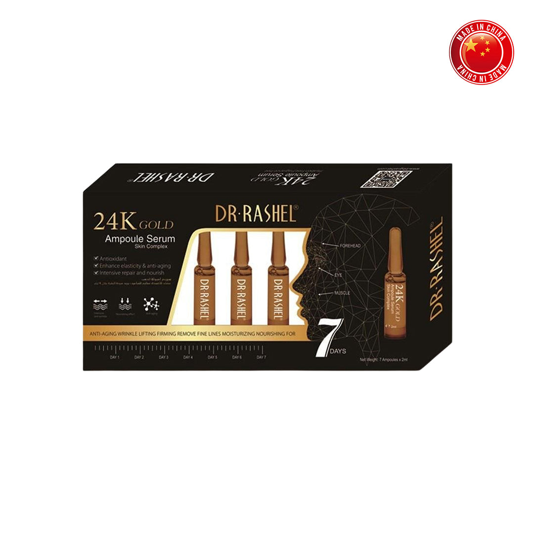 This 24K Gold Ampoule Serum features a potent, freshly sealed formula with high concentration that speeds up cell renewal across the epidermis. It enhances cellular metabolism, reduces fine lines and deep wrinkles, and provides lasting hydration. Infused with luxurious gold essence and nourishing capsules containing gold nanoparticles, it promotes radiant, healthy skin and supports a deeply luminous complexion.