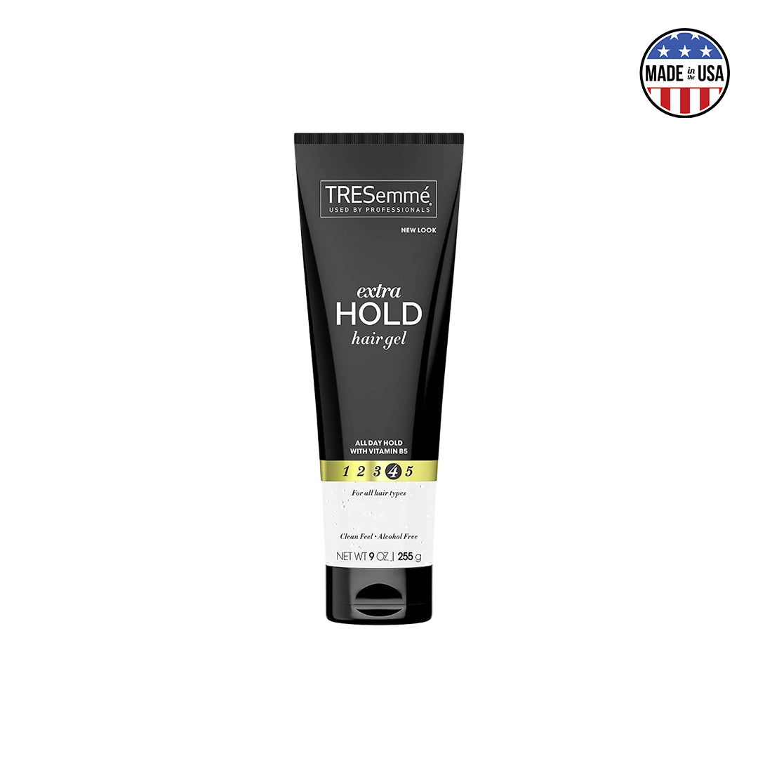 Experience all-day hold & 24-hour frizz protection with Tresemme Extra Hold Hair Gel. Utilizing vitamin B5, this alcohol-free, clean-feeling formula locks out frizz while providing extra-firm control & a non-sticky, shiny finish.