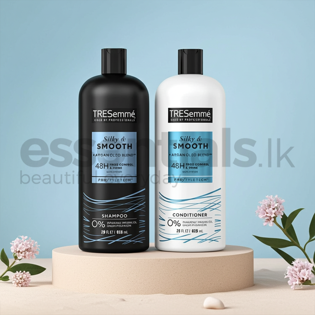 - TRESemmé Silky & Smooth Conditioner for dry hair, with Argan Oleo Blend, intensely moisturizes, taming frizz & flyaways to leave hair silky soft, and smooth.