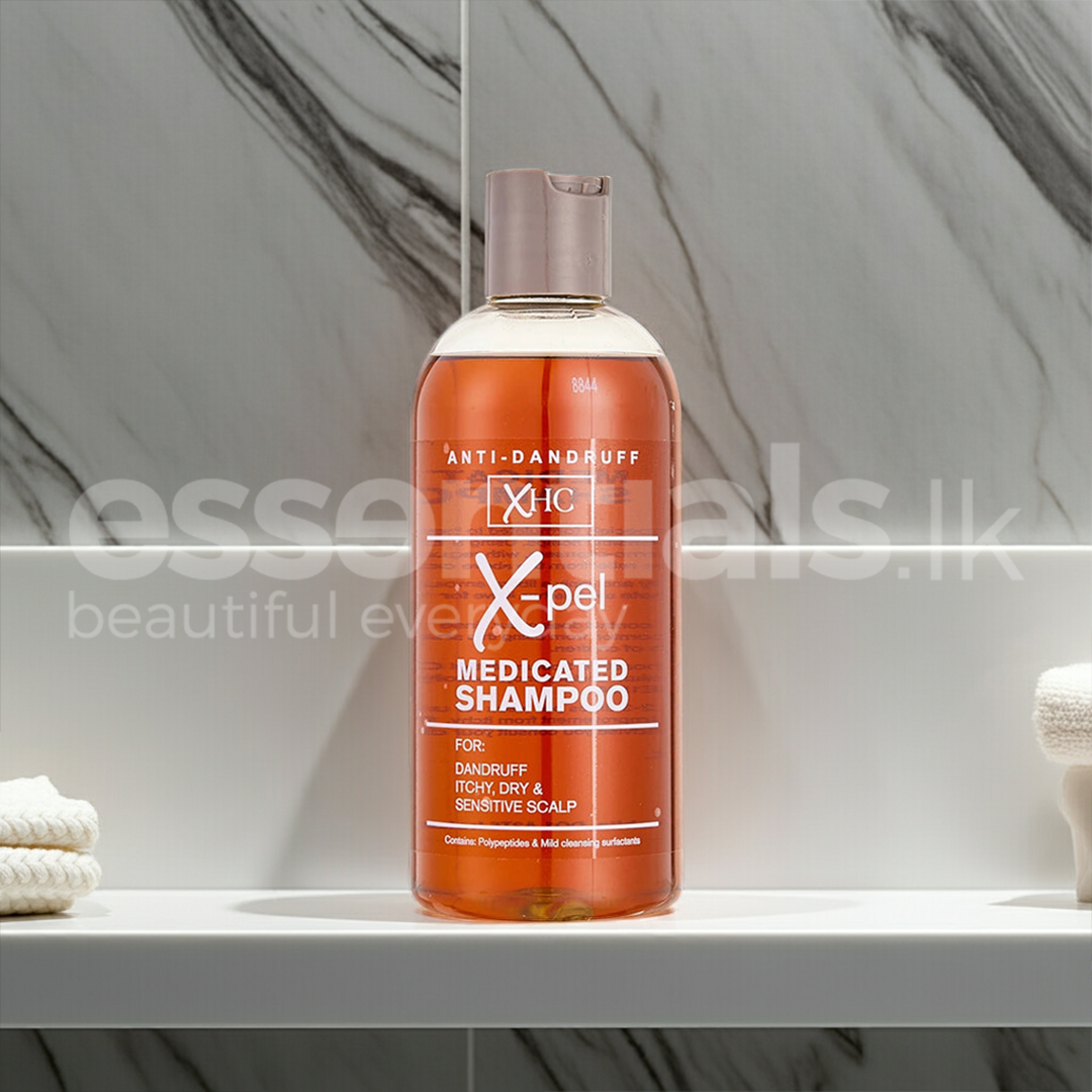- Wet hair thoroughly & apply a liberal amount of X-pel Medicated Shampoo to hair & scalp to create a rich lather, leave for 2 minutes, rinse, & repeat
